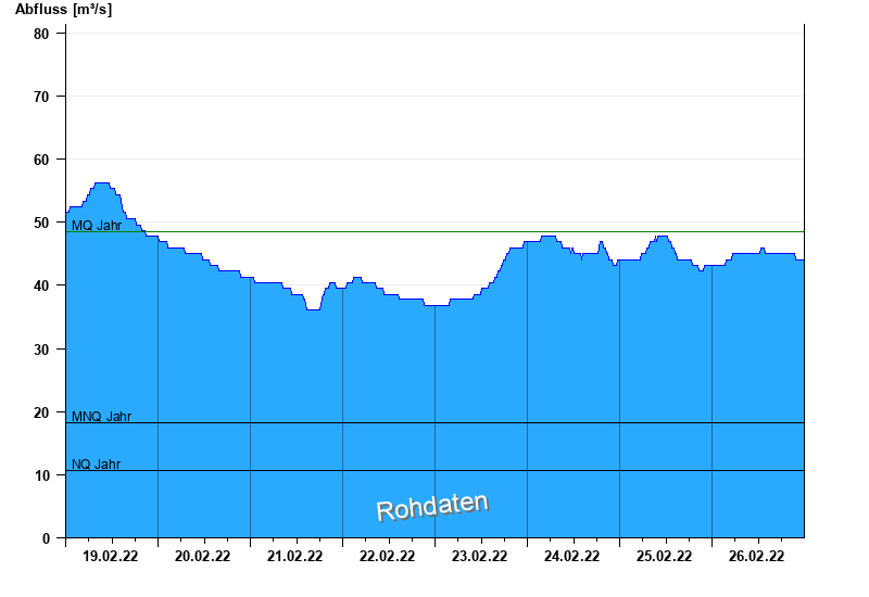- Mittlerer Niedrigwasserabfluss MNQ 18,2 m³/s