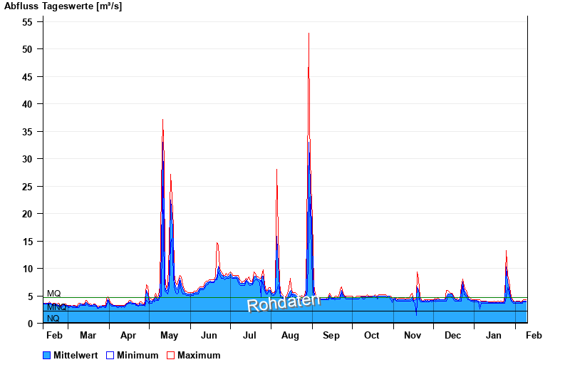 | Datum | Mittelwert [m³/s] | Maximum [m³/s] | Minimum [m³/s] |