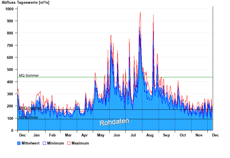 | Datum | Mittelwert [m³/s] | Maximum [m³/s] | Minimum [m³/s] |