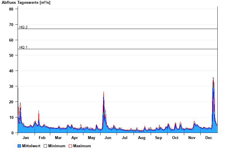 | Datum | Mittelwert [m³/s] | Maximum [m³/s] | Minimum [m³/s] |