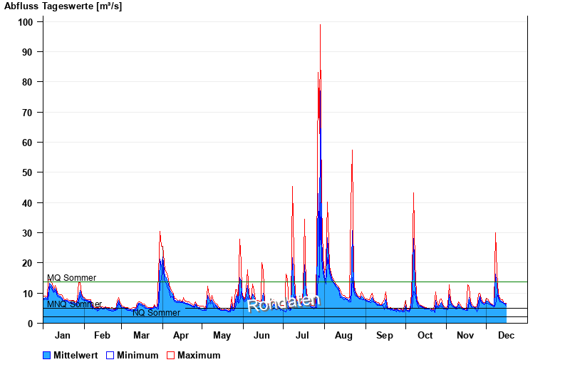 | Datum | Mittelwert [m³/s] | Maximum [m³/s] | Minimum [m³/s] |