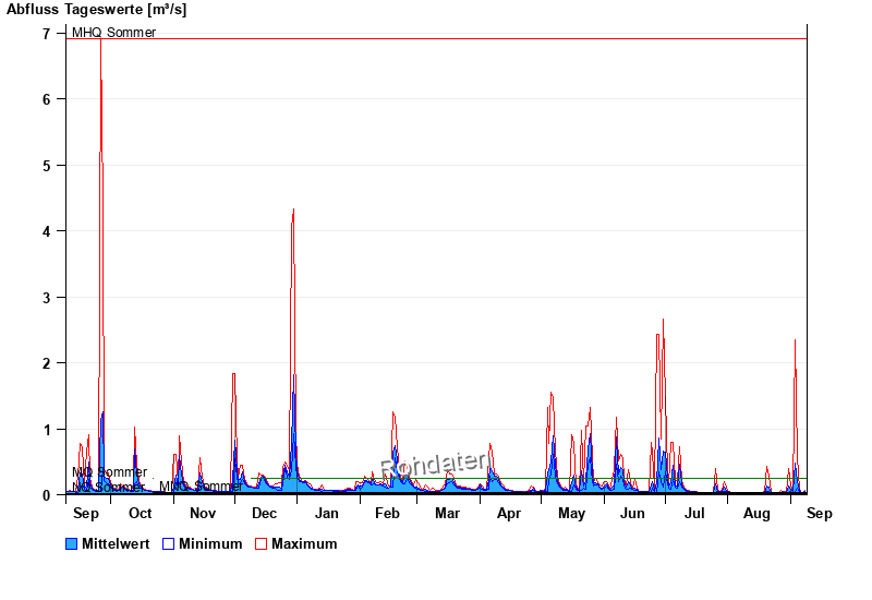 | Datum | Mittelwert [m³/s] | Maximum [m³/s] | Minimum [m³/s] |