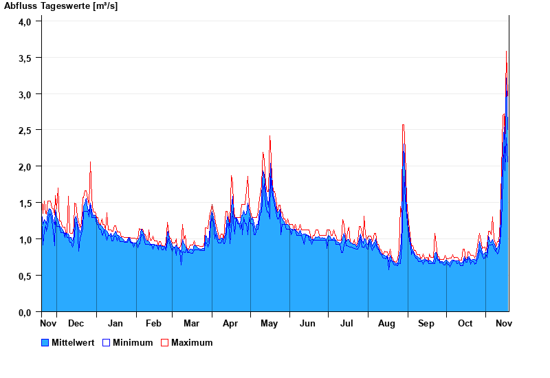 | Datum | Mittelwert [m³/s] | Maximum [m³/s] | Minimum [m³/s] |