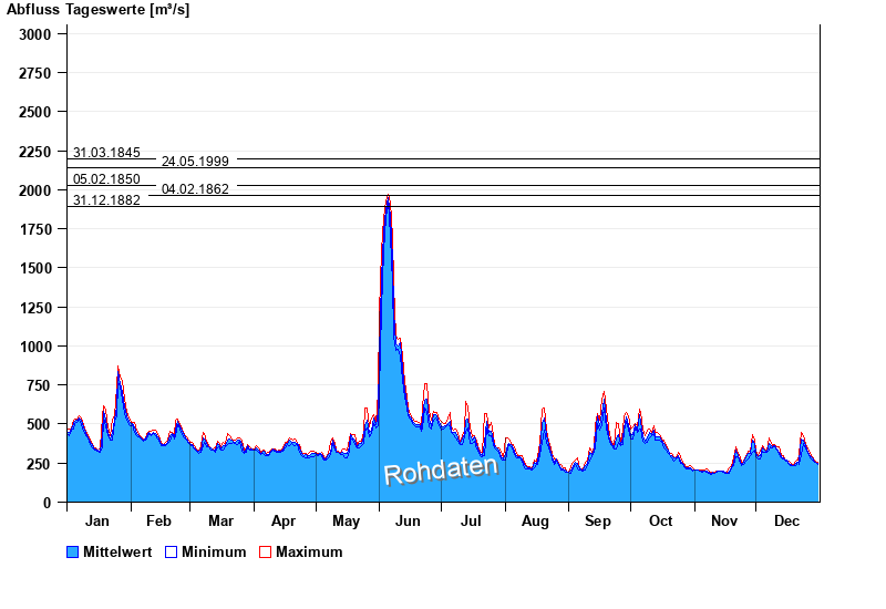 | Datum | Mittelwert [m³/s] | Maximum [m³/s] | Minimum [m³/s] |