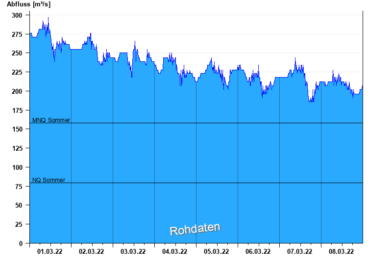 - Mittlerer Niedrigwasserabfluss MNQ 158 m³/s