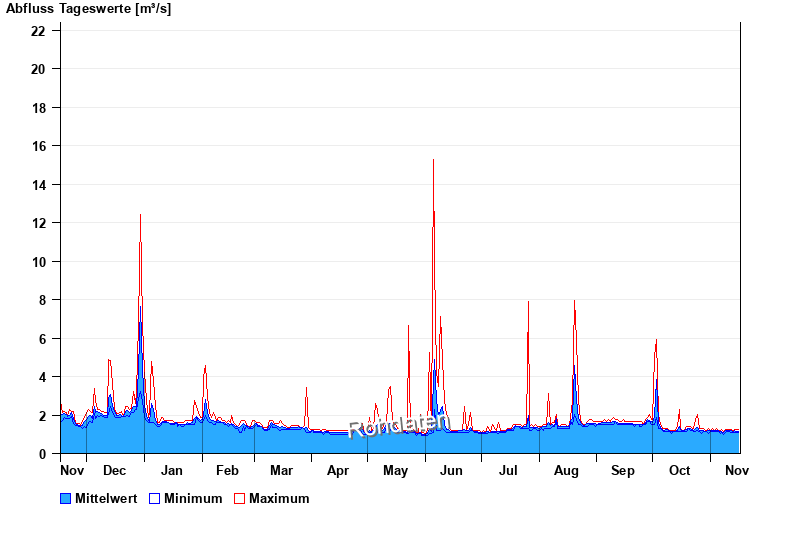 | Datum | Mittelwert [m³/s] | Maximum [m³/s] | Minimum [m³/s] |