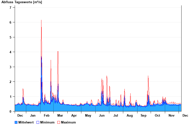 | Datum | Mittelwert [m³/s] | Maximum [m³/s] | Minimum [m³/s] |