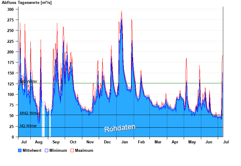 | Datum | Mittelwert [m³/s] | Maximum [m³/s] | Minimum [m³/s] |