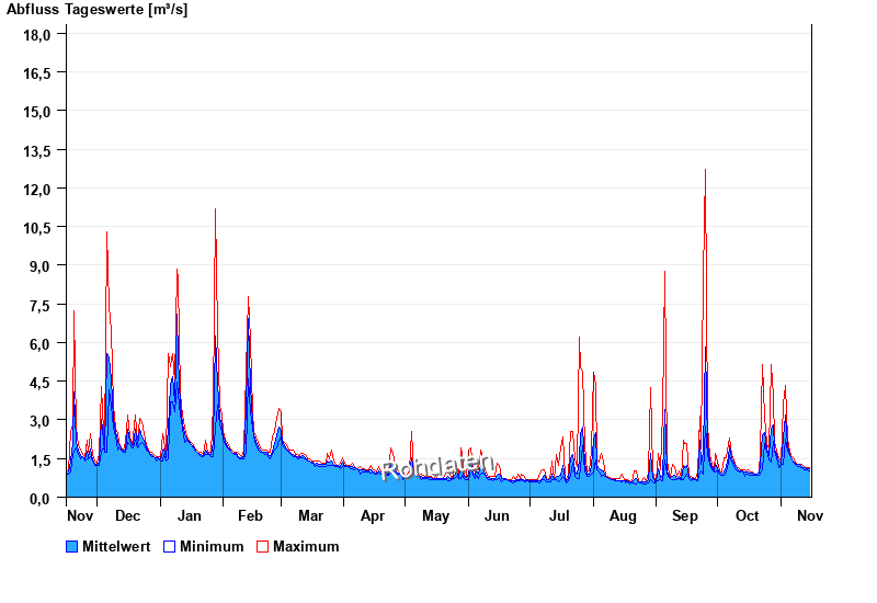| Datum | Mittelwert [m³/s] | Maximum [m³/s] | Minimum [m³/s] |
