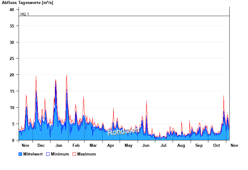| Datum | Mittelwert [m³/s] | Maximum [m³/s] | Minimum [m³/s] |