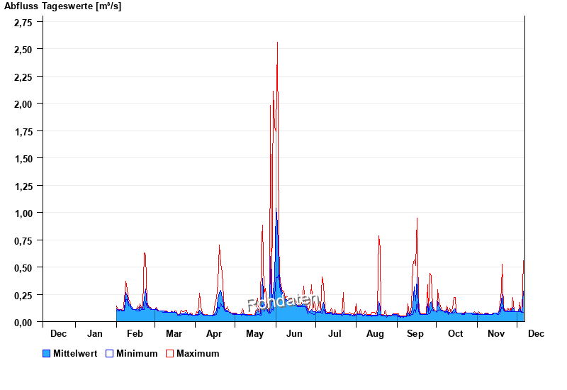 | Datum | Mittelwert [m³/s] | Maximum [m³/s] | Minimum [m³/s] |