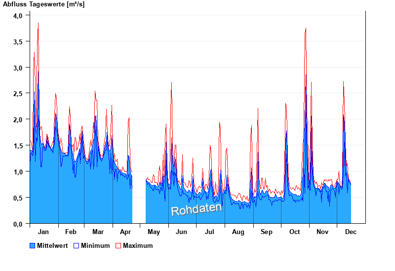| Datum | Mittelwert [m³/s] | Maximum [m³/s] | Minimum [m³/s] |