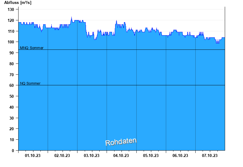 - Mittlerer Niedrigwasserabfluss MNQ 92,9 m³/s