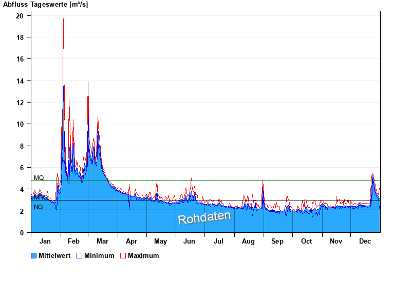 - Mittlerer Niedrigwasserabfluss MNQ 2,96 m³/s