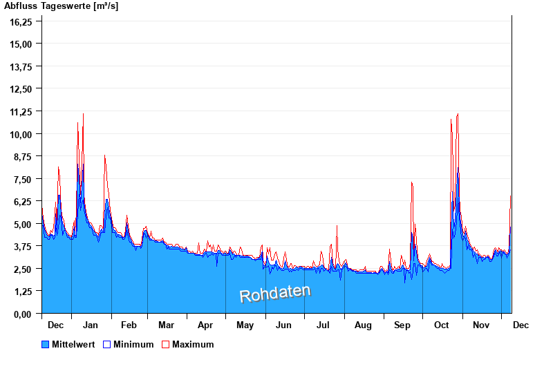 | Datum | Mittelwert [m³/s] | Maximum [m³/s] | Minimum [m³/s] |