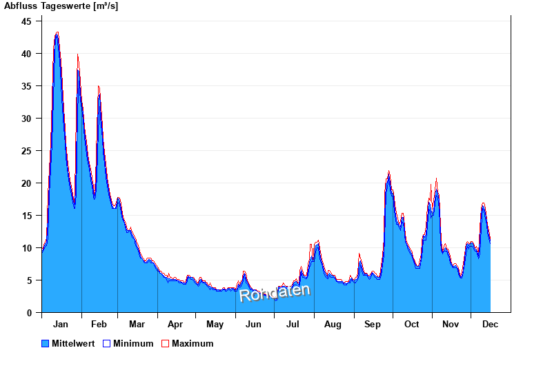 | Datum | Mittelwert [m³/s] | Maximum [m³/s] | Minimum [m³/s] |