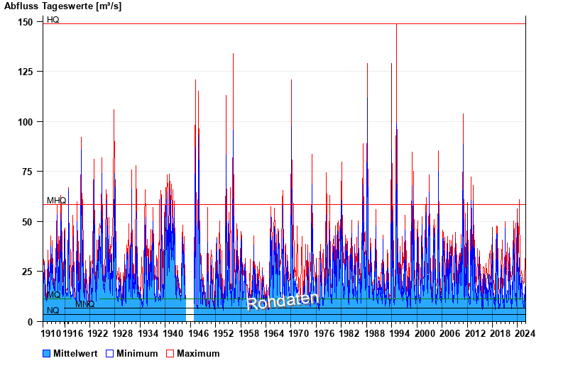 | Datum | Mittelwert [m³/s] | Maximum [m³/s] | Minimum [m³/s] |