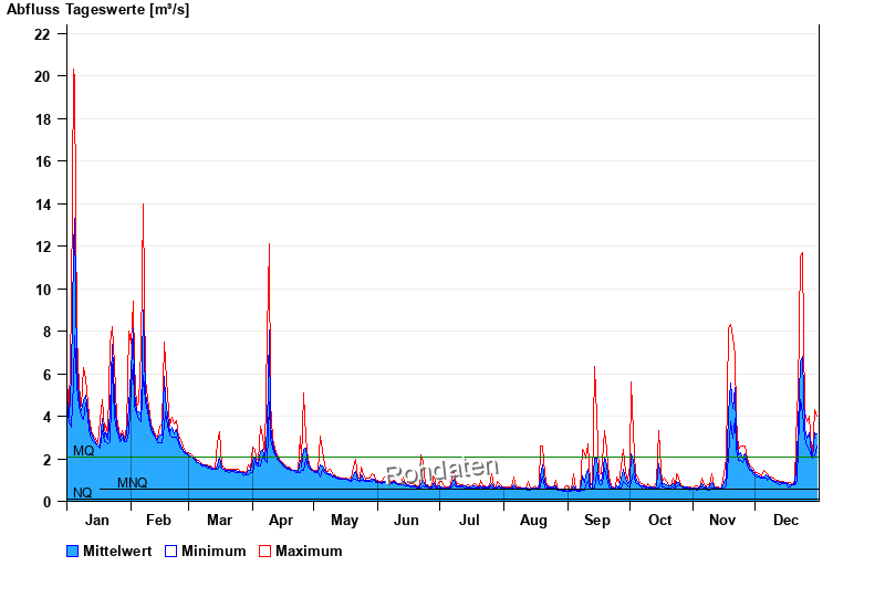 | Datum | Mittelwert [m³/s] | Maximum [m³/s] | Minimum [m³/s] |