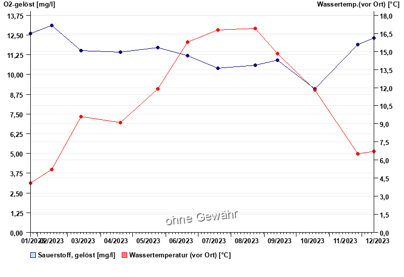 | Datum | O2-gelöst [mg/l] | Wassertemp.(vor Ort) [°C] |