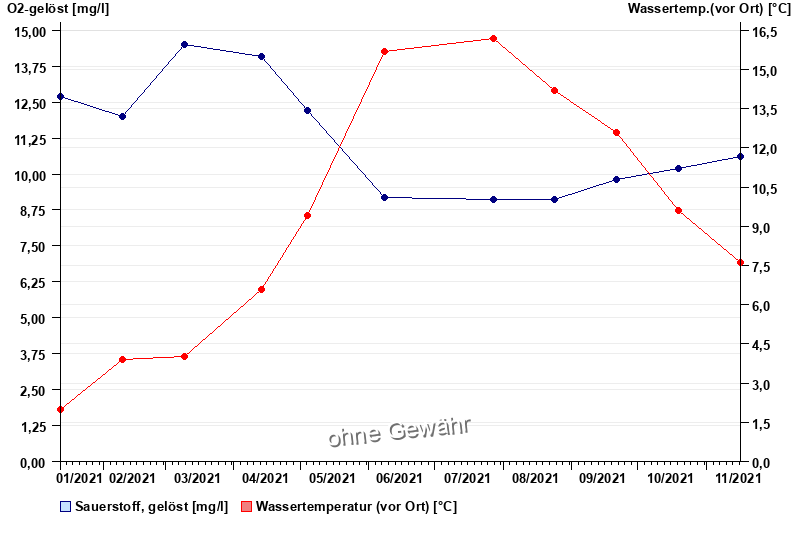 | Datum | O2-gelöst [mg/l] | Wassertemp.(vor Ort) [°C] |