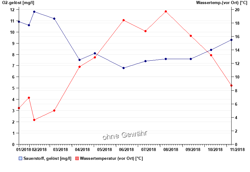 | Datum | O2-gelöst [mg/l] | Wassertemp.(vor Ort) [°C] |