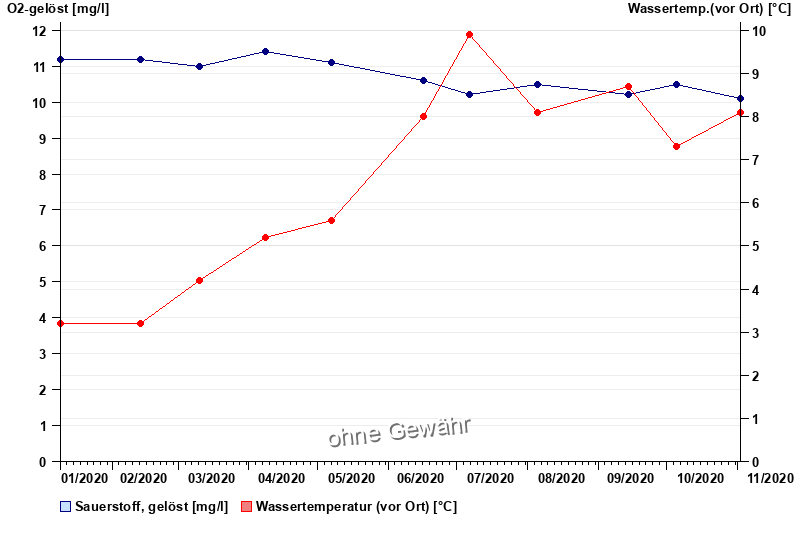 | Datum | O2-gelöst [mg/l] | Wassertemp.(vor Ort) [°C] |