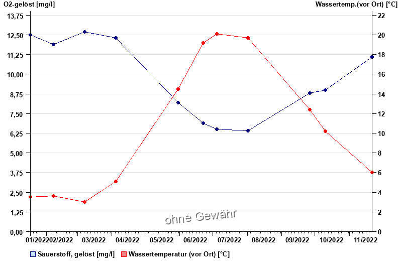 | Datum | O2-gelöst [mg/l] | Wassertemp.(vor Ort) [°C] |
