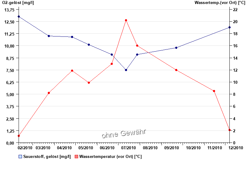 | Datum | O2-gelöst [mg/l] | Wassertemp.(vor Ort) [°C] |