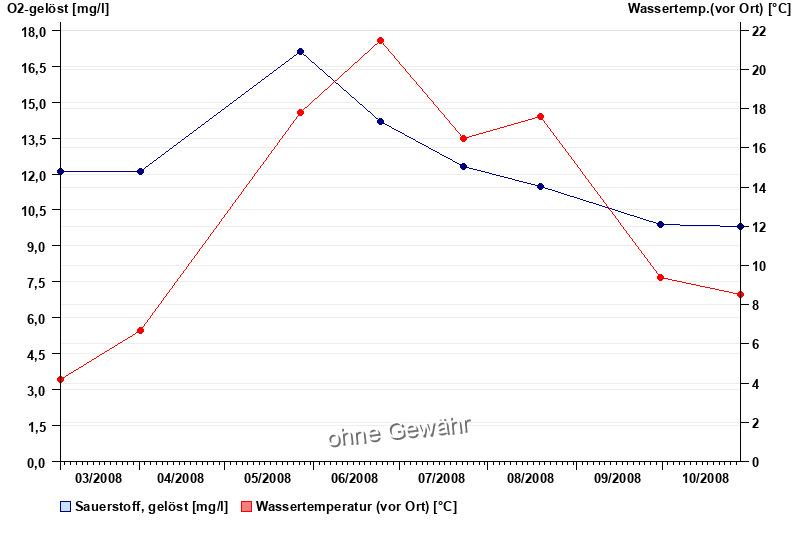 | Datum | O2-gelöst [mg/l] | Wassertemp.(vor Ort) [°C] |