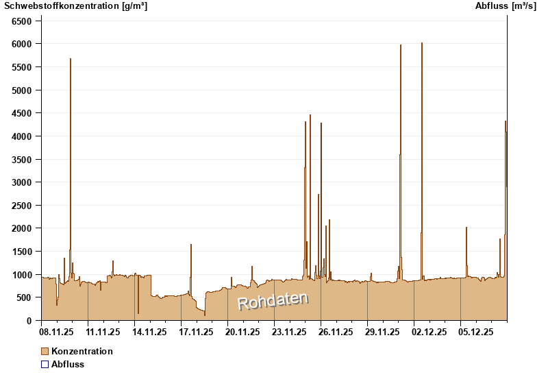 | Datum | Konzentration [g/m³] | Abfluss [m³/s] |