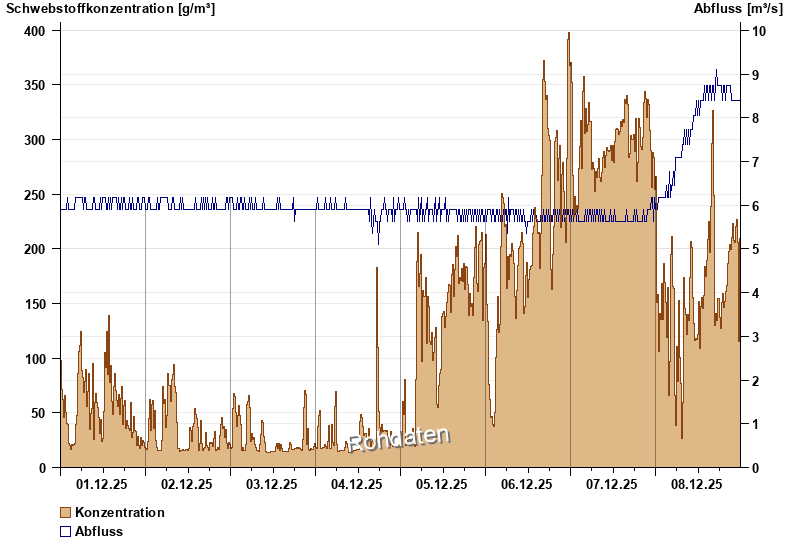 | Datum | Konzentration [g/m³] | Abfluss [m³/s] |