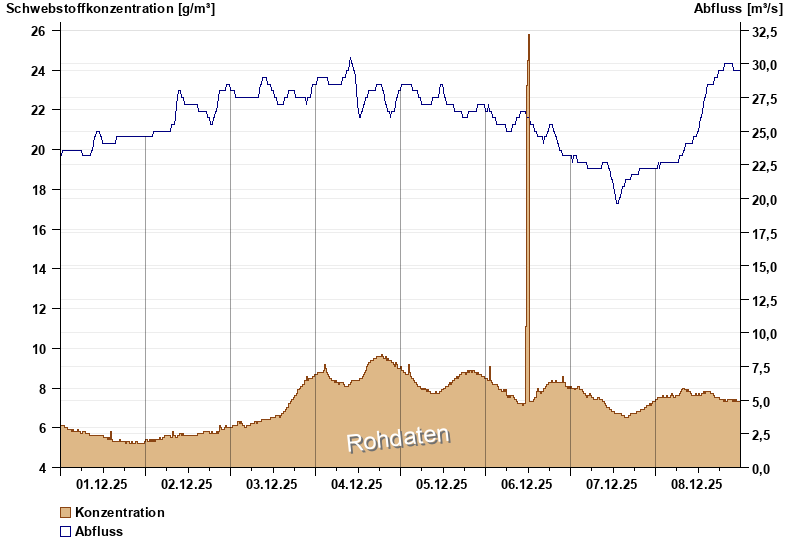 | Datum | Konzentration [g/m³] | Abfluss [m³/s] |