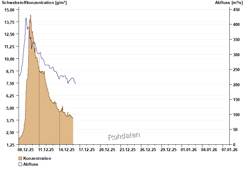 | Datum | Konzentration [g/m³] | Abfluss [m³/s] |