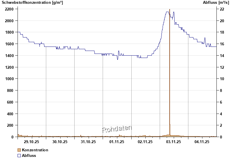 | Datum | Konzentration [g/m³] | Abfluss [m³/s] |