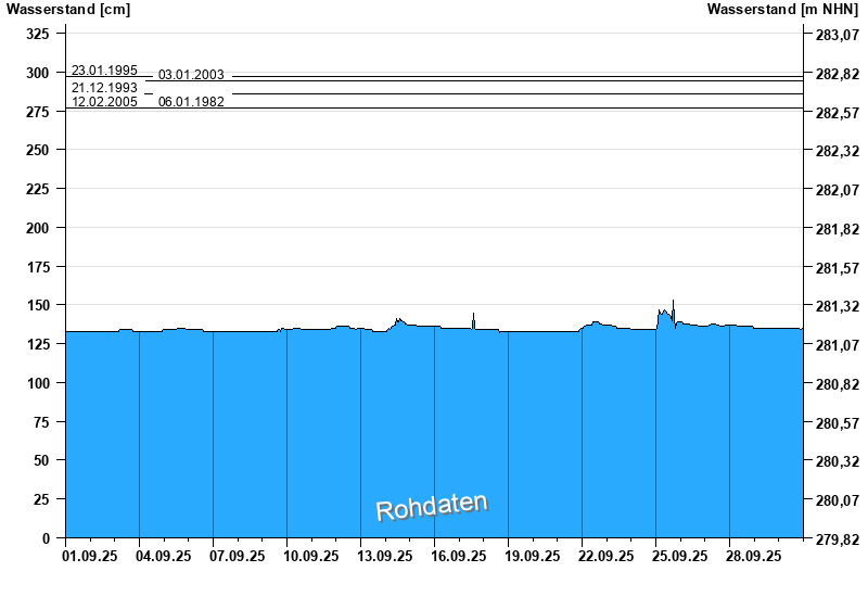 Wasserstand vom 01.09.2025 bis zum 30.09.2025