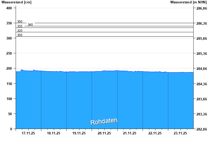 Wasserstand vom 17.11.2025 bis zum 23.11.2025| Datum | Wasserstand [cm] |