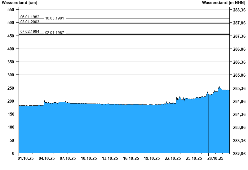 Wasserstand vom 01.10.2025 bis zum 30.10.2025