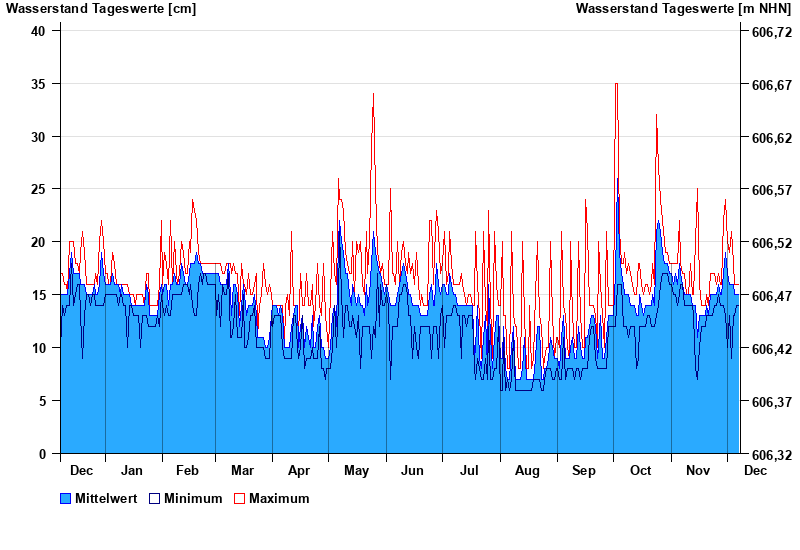 | Datum | Mittelwert [cm] | Maximum [cm] | Minimum [cm] |