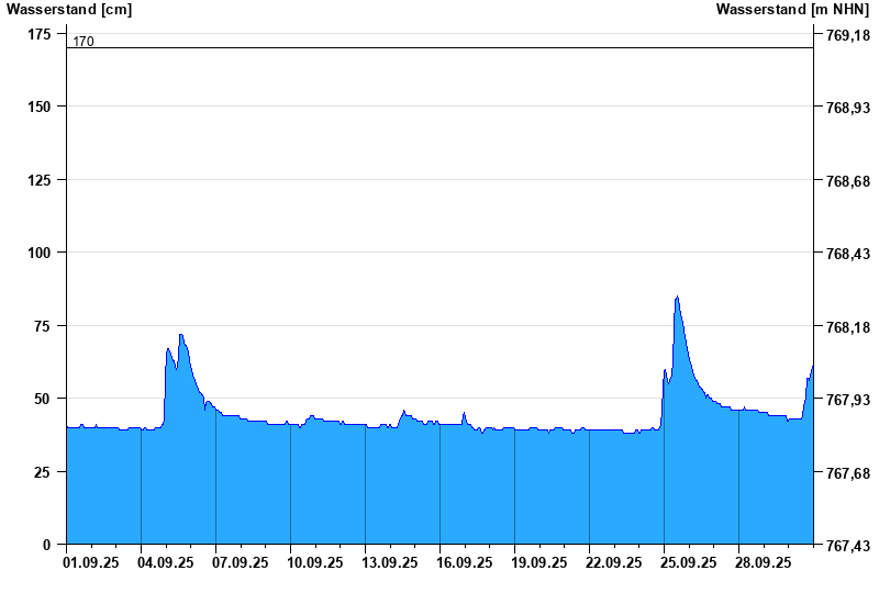Wasserstand vom 01.09.2025 bis zum 30.09.2025