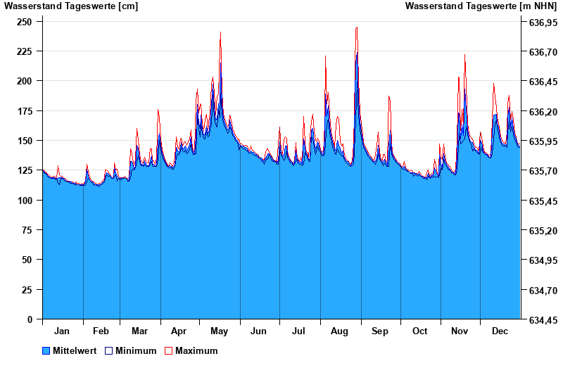| Datum | Mittelwert [cm] | Maximum [cm] | Minimum [cm] |