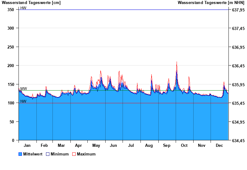 | Datum | Mittelwert [cm] | Maximum [cm] | Minimum [cm] |