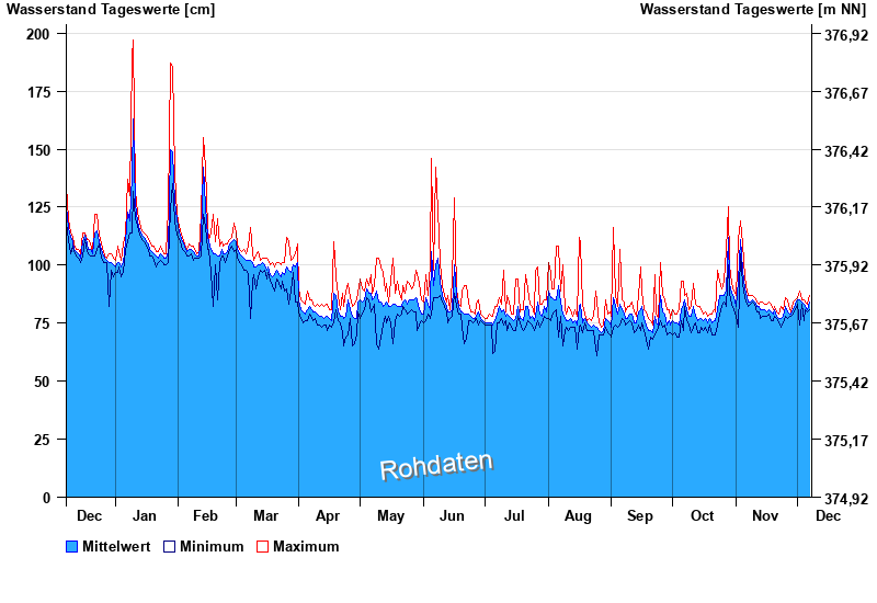 | Datum | Mittelwert [cm] | Maximum [cm] | Minimum [cm] |