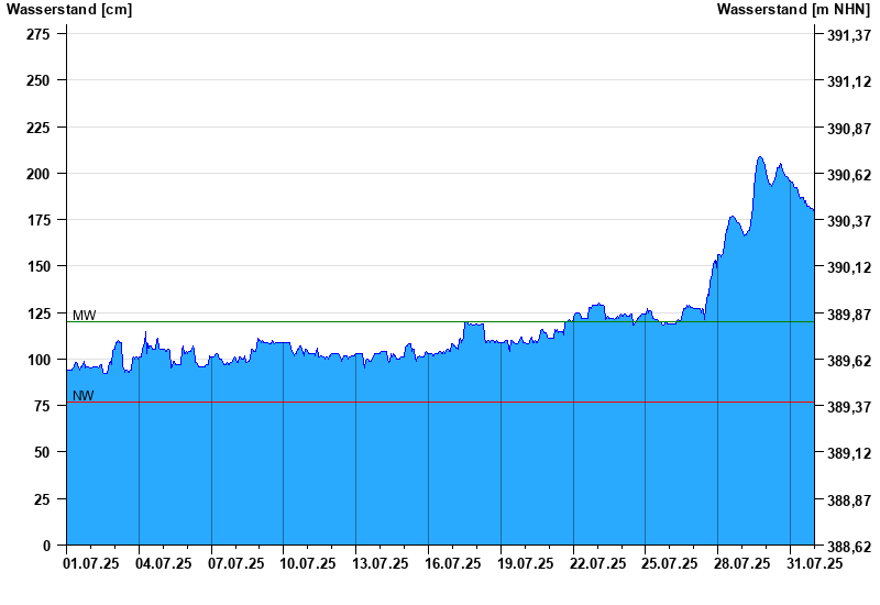 Wasserstand vom 01.07.2025 bis zum 31.07.2025