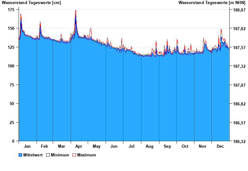 | Datum | Mittelwert [cm] | Maximum [cm] | Minimum [cm] |