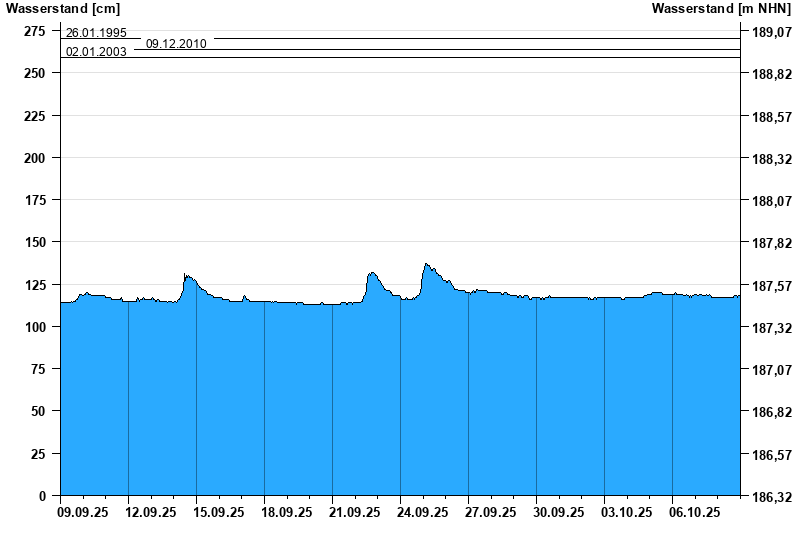 Wasserstand vom 09.09.2025 bis zum 08.10.2025