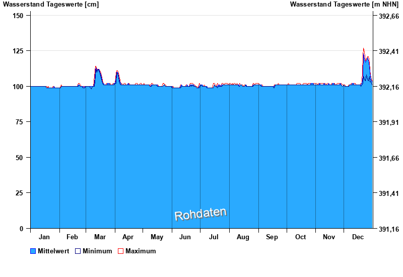 | Datum | Mittelwert [cm] | Maximum [cm] | Minimum [cm] |