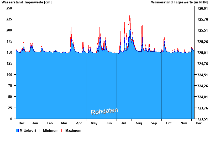 | Datum | Mittelwert [cm] | Maximum [cm] | Minimum [cm] |