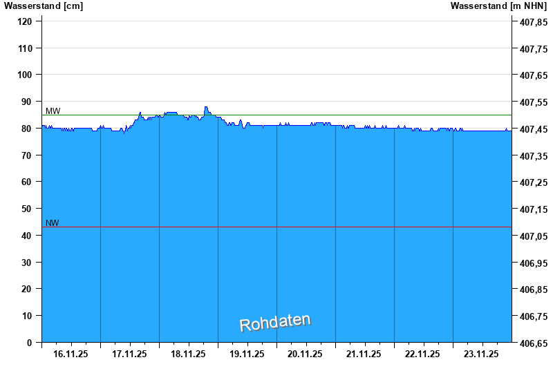 Wasserstand vom 16.11.2025 bis zum 23.11.2025