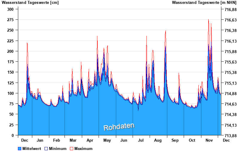 | Datum | Mittelwert [cm] | Maximum [cm] | Minimum [cm] |