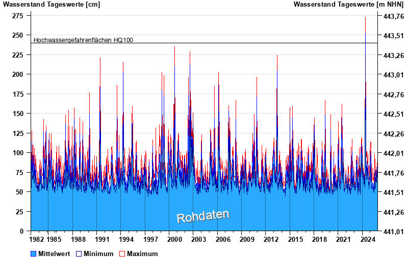 | Datum | Mittelwert [cm] | Maximum [cm] | Minimum [cm] |